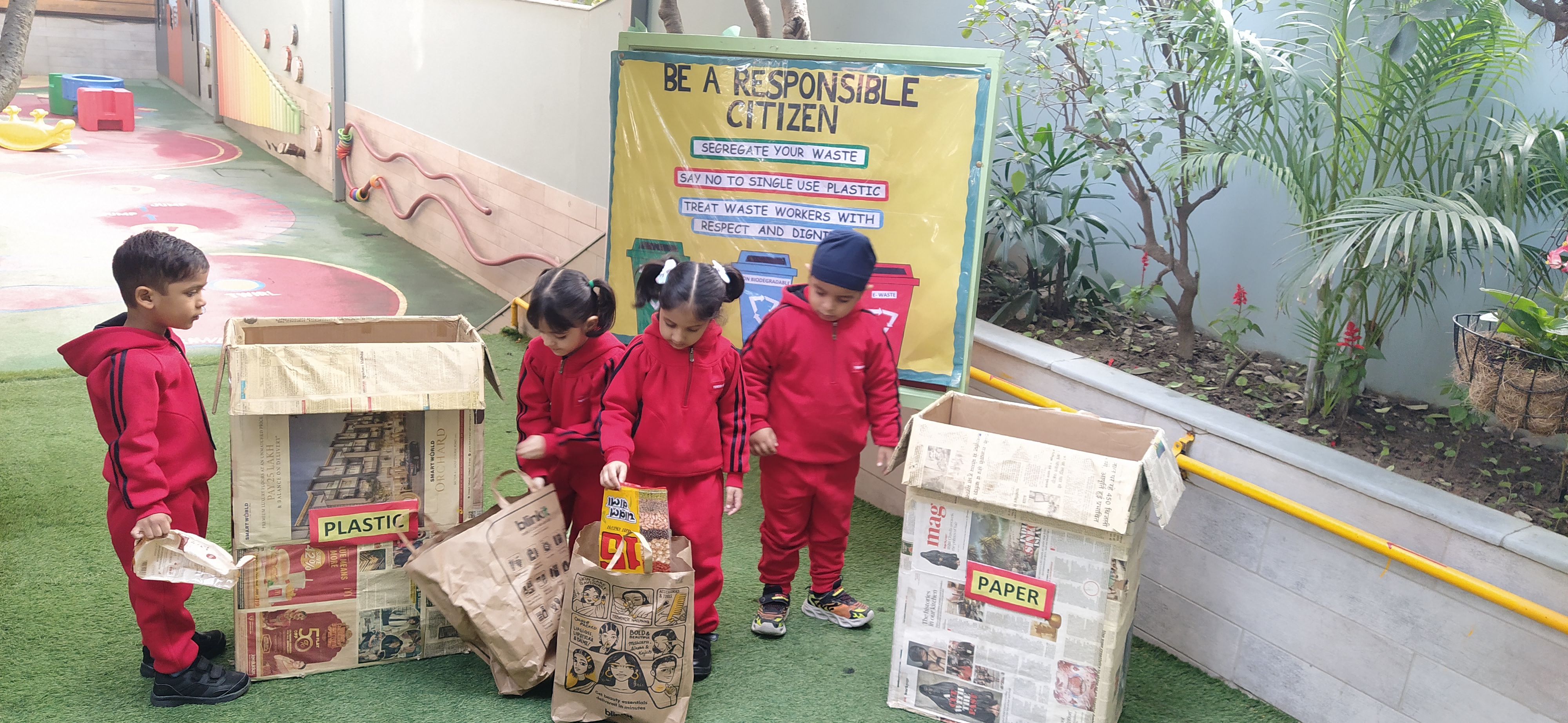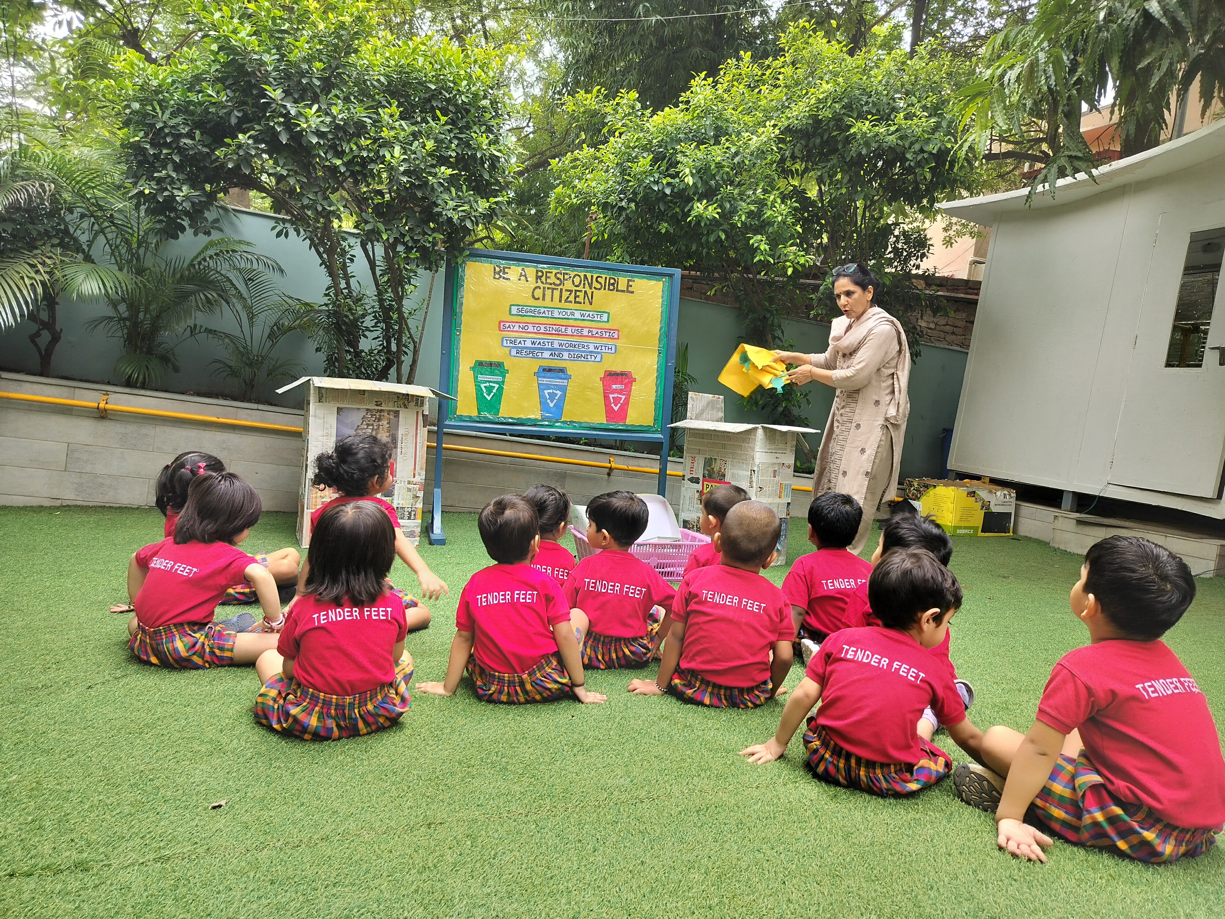 Taking care of our Earth is no longer an option – it is a necessity. We have exploited nature by cutting innumerable trees and extracting minerals, crystals and other resources. The animals have no choice but to eat the plastic bags filled with kitchen waste that we throw around. Water levels are depleting because we waste so much and water bodies are vanishing, replaced by concrete houses. The fresh smell of the air has been polluted by the toxic fumes that factories and vehicles emit. We can still save our environment. And what better way than to start with the very young - the children! It is with great pride that we at Tender Feet are a part of the ‘Green Revolution’ headed by our Director, Ms. Anu Khurana. We observe every Monday as Earth Sense Day where children carry newspapers, plastic bottles, and E-waste that is not properly recycled from their homes and segregate the waste into three different cartons placed in the school. THE EFFORTS PUT BY THE PARENTS AND THE STAFF AT TENDER FEET ARE DONE TO ENSURE THAT NONE OF THE DRY WASTE ENDS UP IN THE LANDFILL!