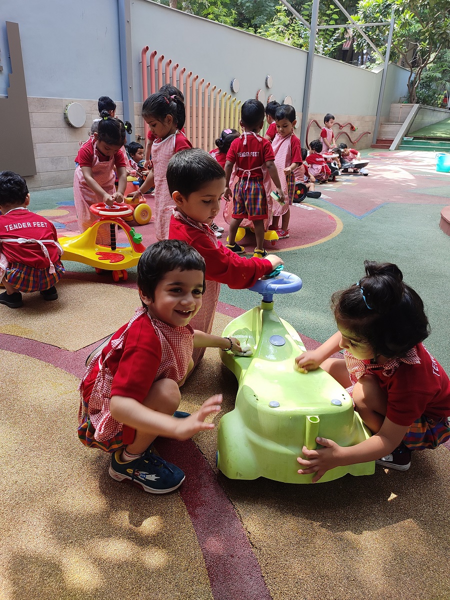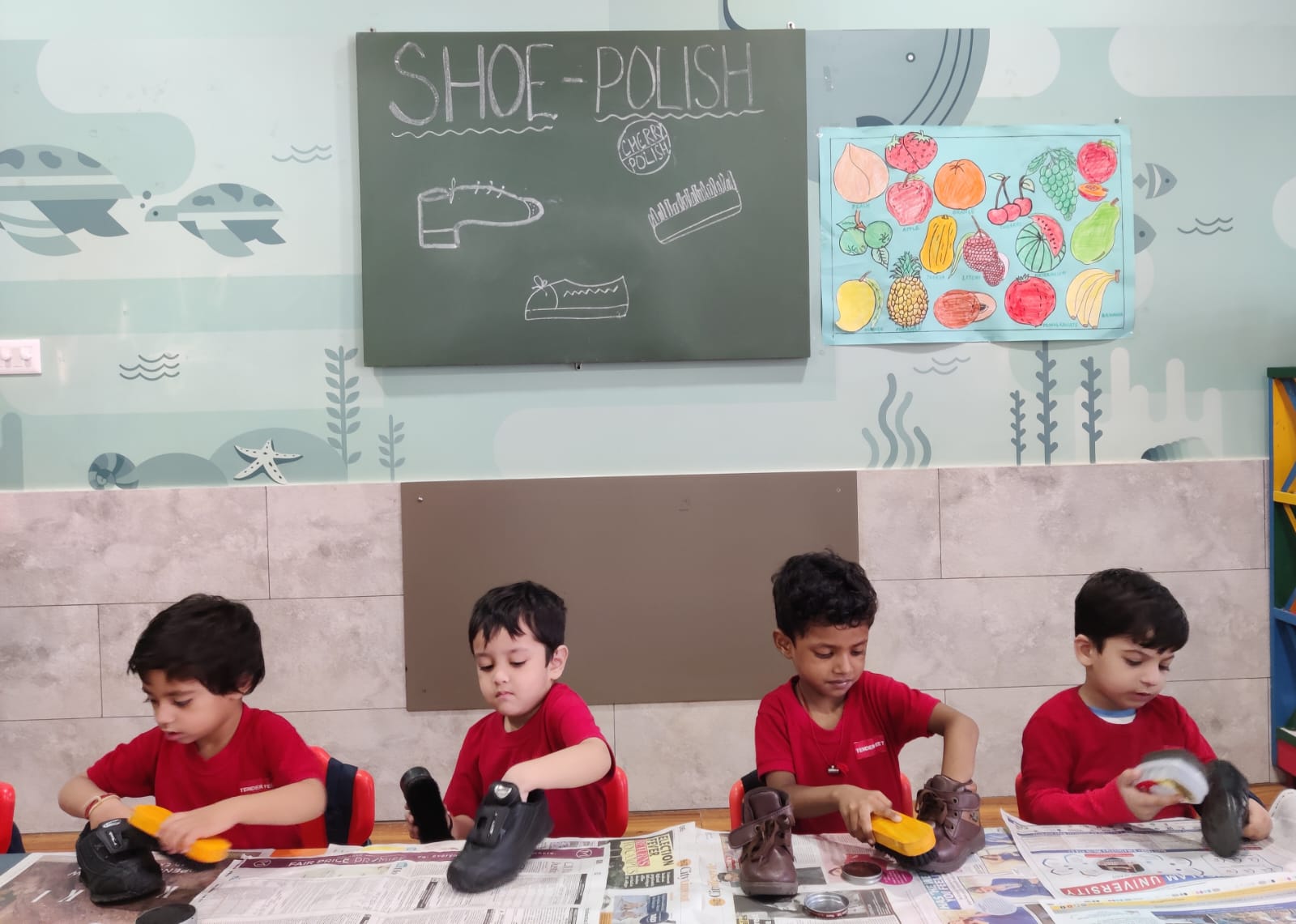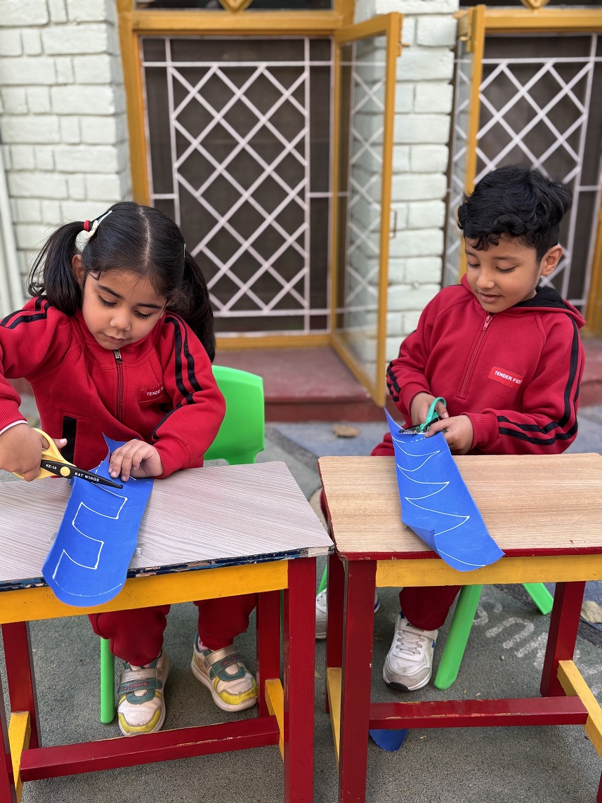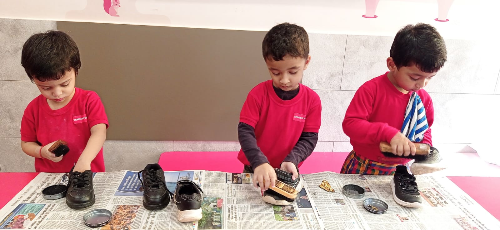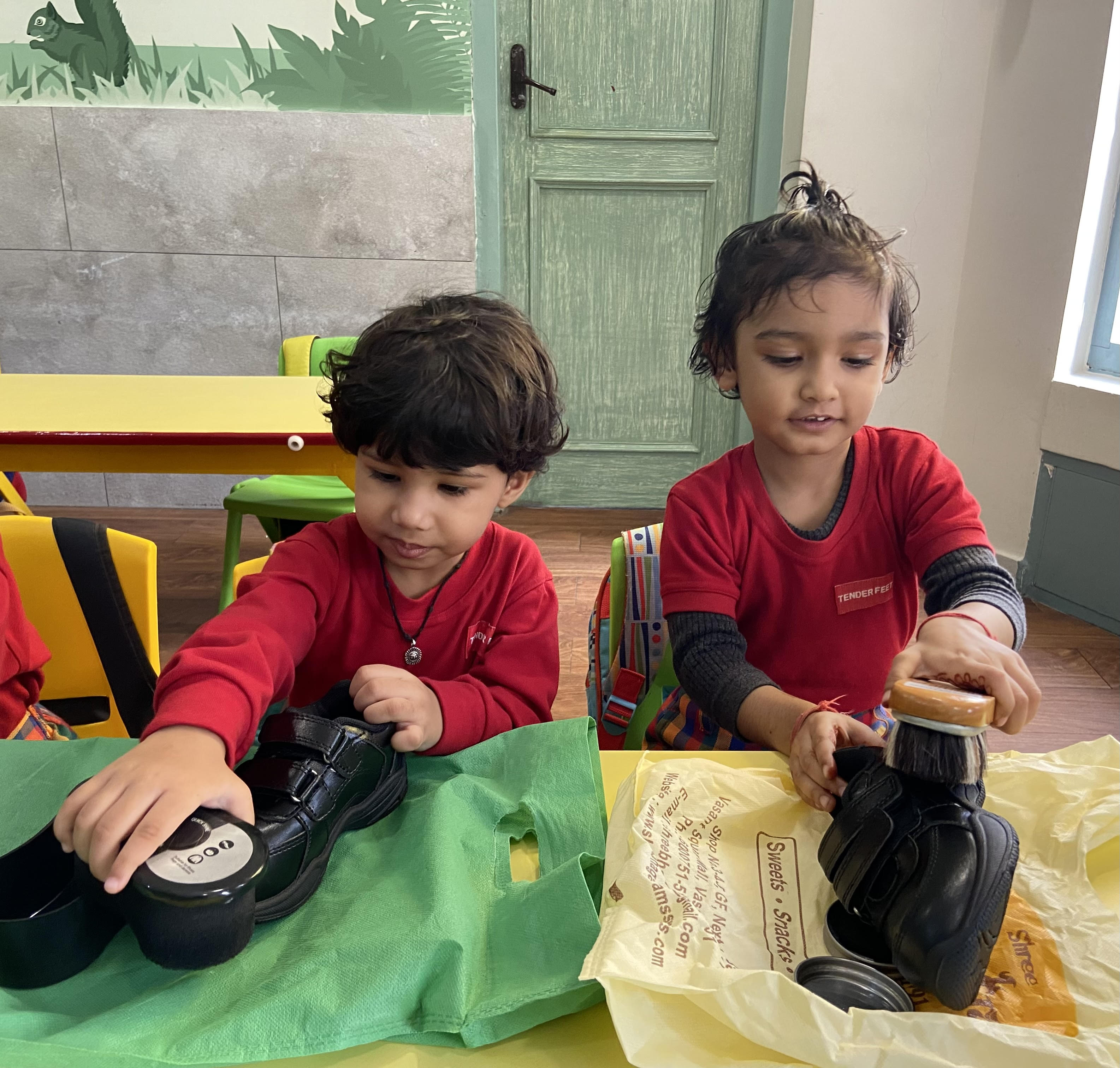 The use of Montessori activities aims to support the holistic development of children, fostering their intellectual, social, emotional and physical growth. Children use special tools like the Pink Tower, Cylindrical Knobs, Broad Stair and activities like polishing shoes, lacing, zipping, pouring activity, gardening, cutting and use of various everyday equipment to learn through play and practice. These materials help improve their fine motor skills, focus, and problem-solving abilities while teaching patience and coordination. The beauty of the Montessori method is that it lets children learn at their own pace, boosting their confidence and curiosity. At Tender Feet, this approach makes children learn to look after themselves and be a useful contributor to the household.