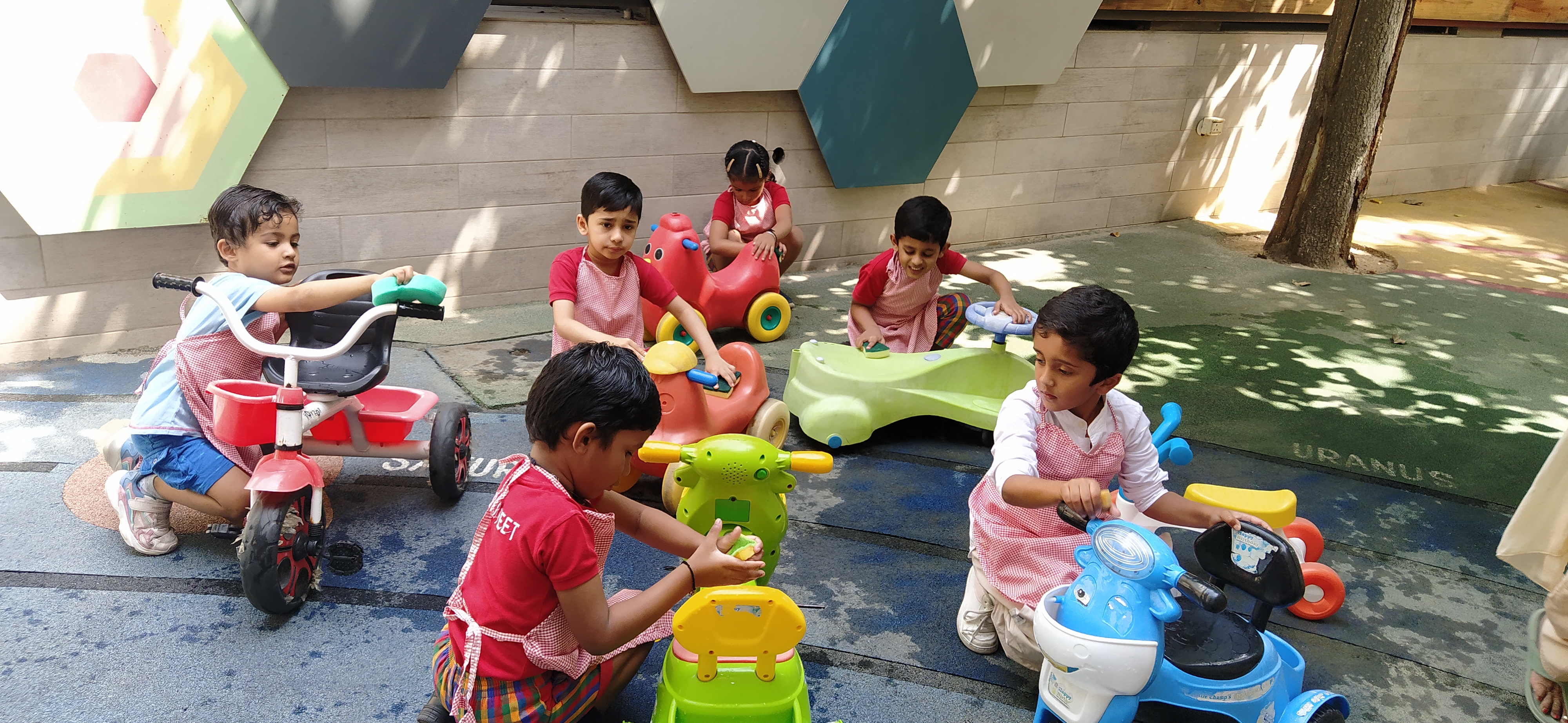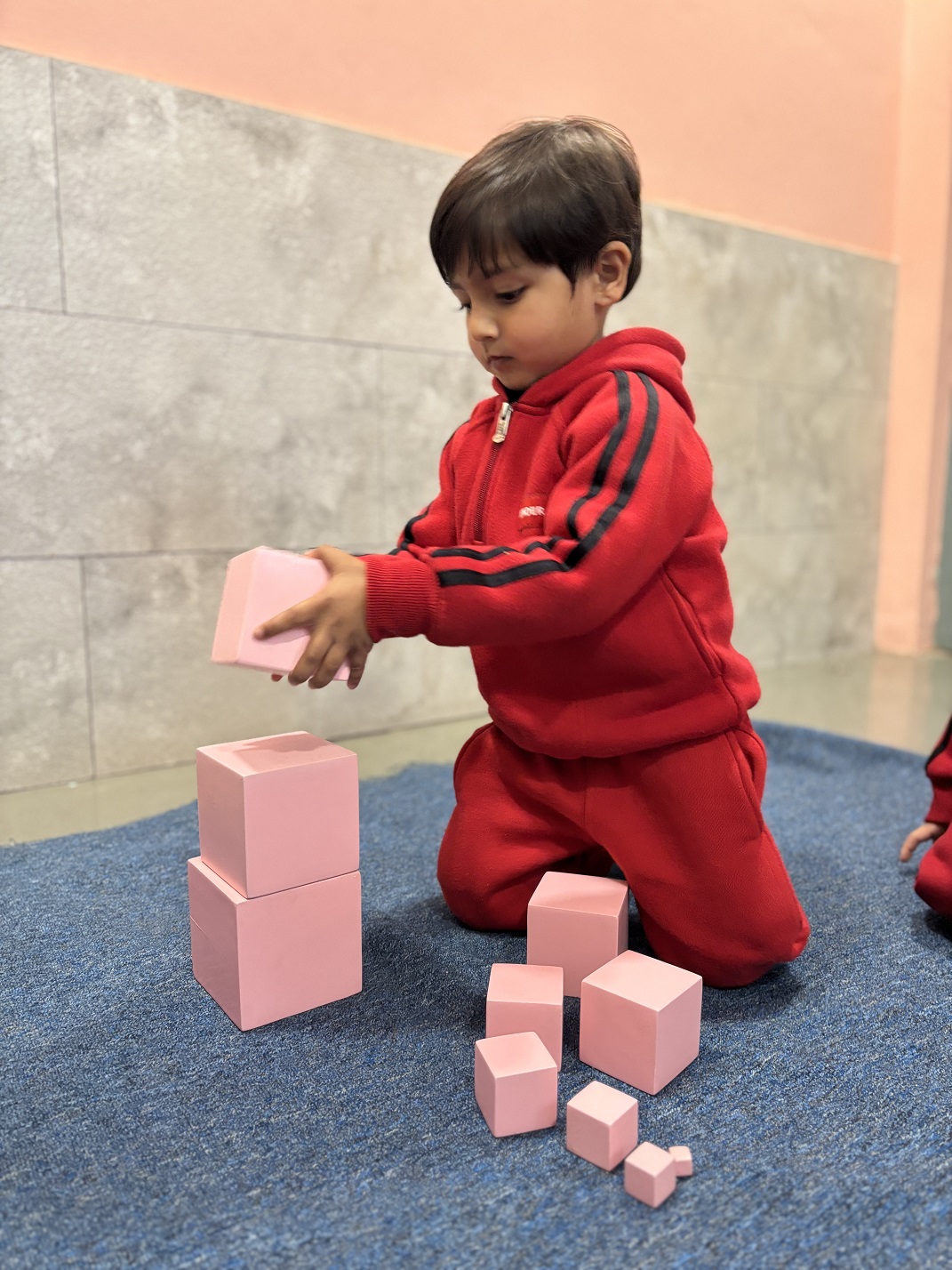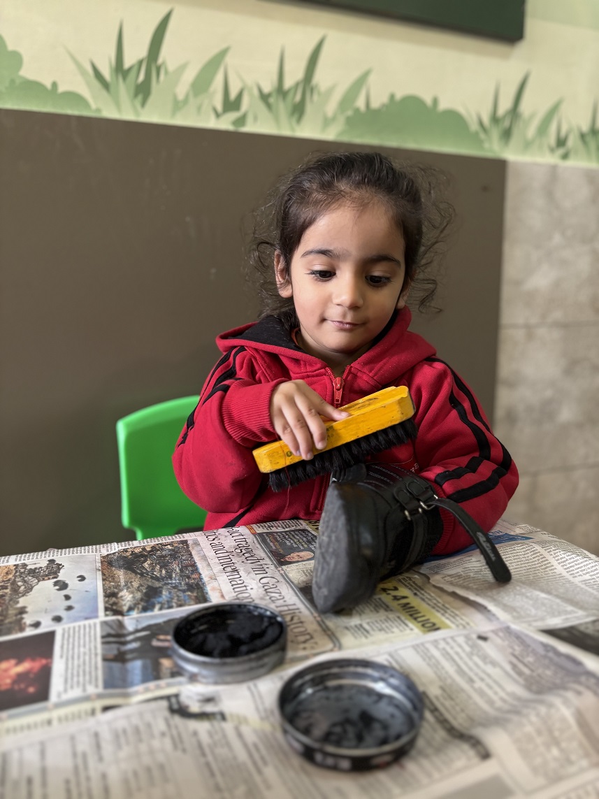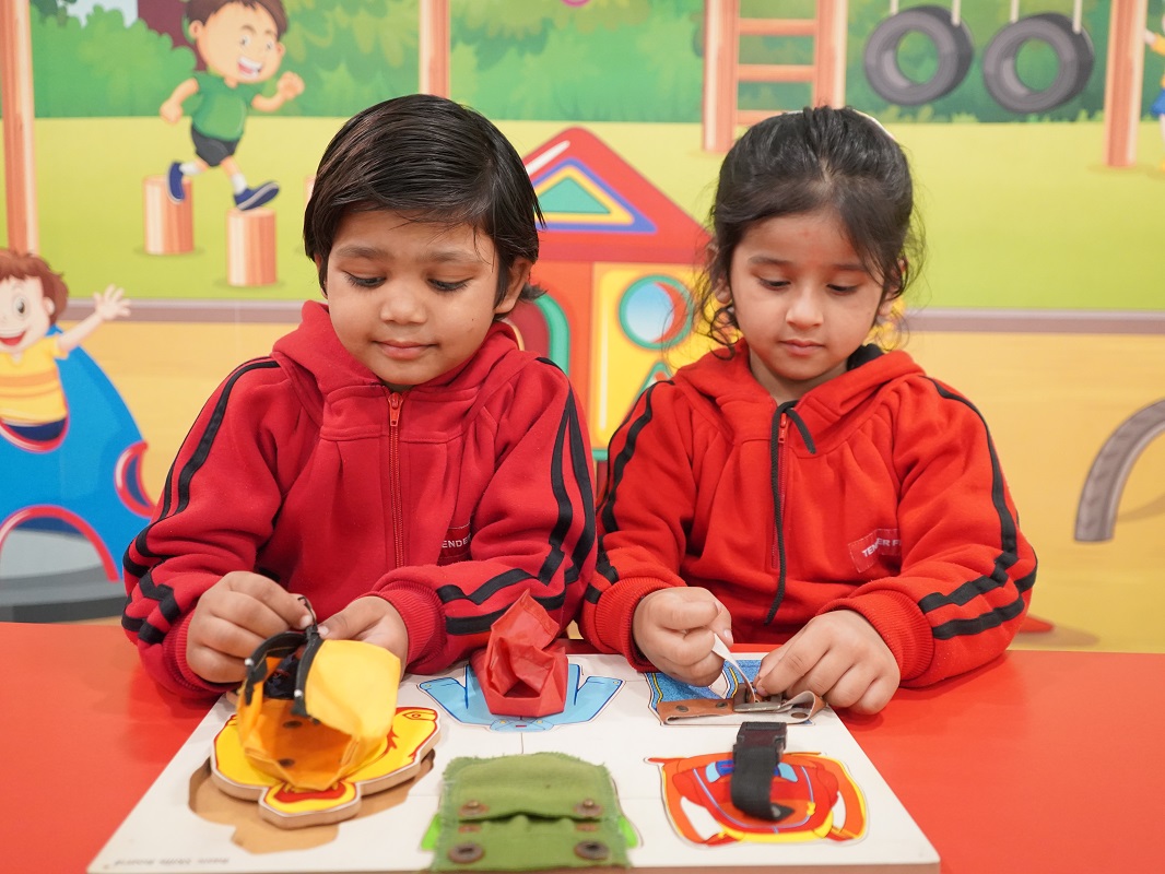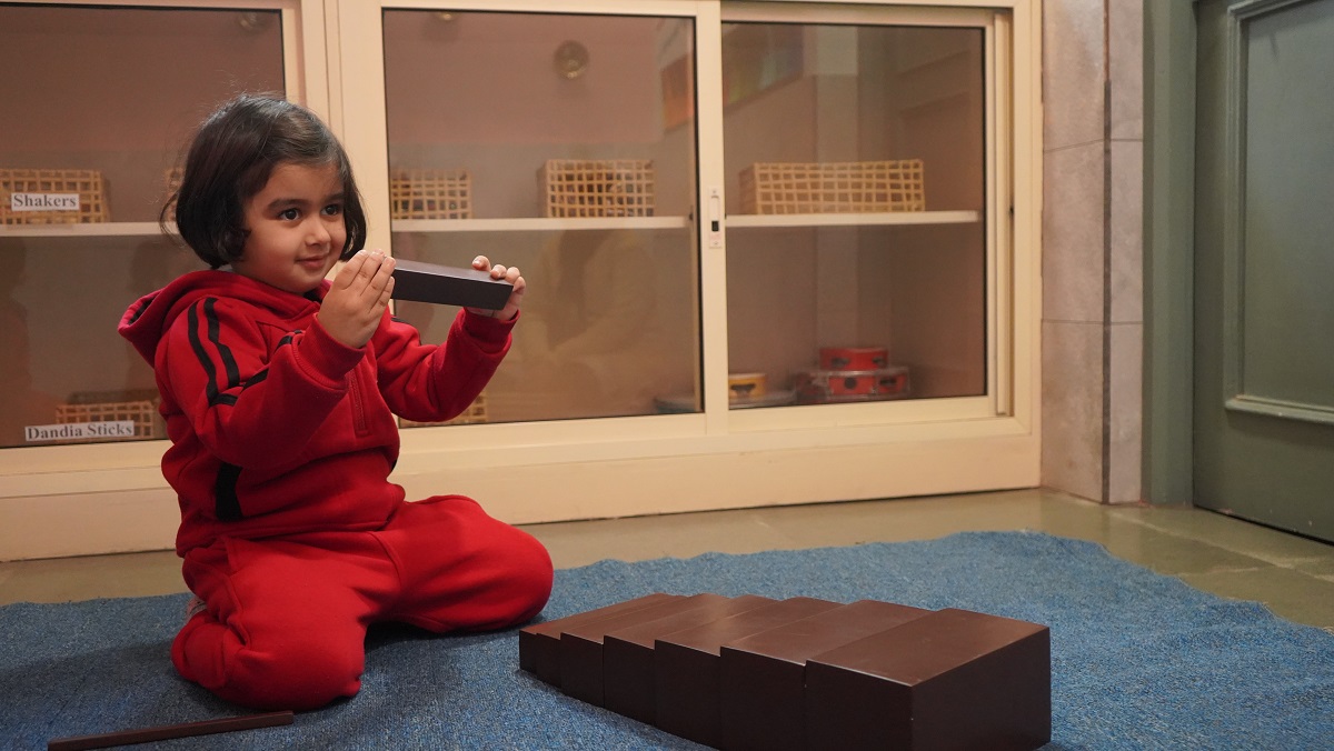 The use of Montessori activities aims to support the holistic development of children, fostering their intellectual, social, emotional and physical growth. Children use special tools like the Pink Tower, Cylindrical Knobs, Broad Stair and activities like polishing shoes, lacing, zipping, pouring activity, gardening, cutting and use of various everyday equipment to learn through play and practice. These materials help improve their fine motor skills, focus, and problem-solving abilities while teaching patience and coordination. The beauty of the Montessori method is that it lets children learn at their own pace, boosting their confidence and curiosity. At Tender Feet, this approach makes children learn to look after themselves and be a useful contributor to the household.